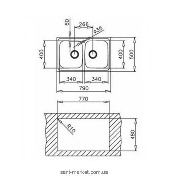 Мийка для кухні прямокутна Teka Basico 79 2B 2 чаші врізна нержавіюча сталь хром матова 11124025