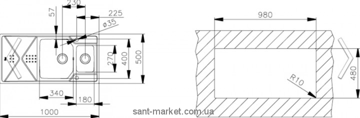 Модель врізної кухонної мийки TEKA CUADRO 2B 1D має стандартну прямокутну форму, дві чаші (основну та додаткову) та крило для сушіння посуду. Раковина виконана із використанням реверсивної конструкції. Матеріал, що використовується для виготовлення – нержавіюча сталь. Данамодель не монтується впритул до інших об'єктів або стіни.