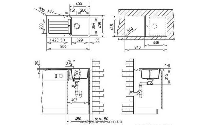 Конструкція має допоміжне крило, з невеликим заглибленням та переливом. Зручна для розморожування продуктів, миття фруктів чи сушіння посуду.