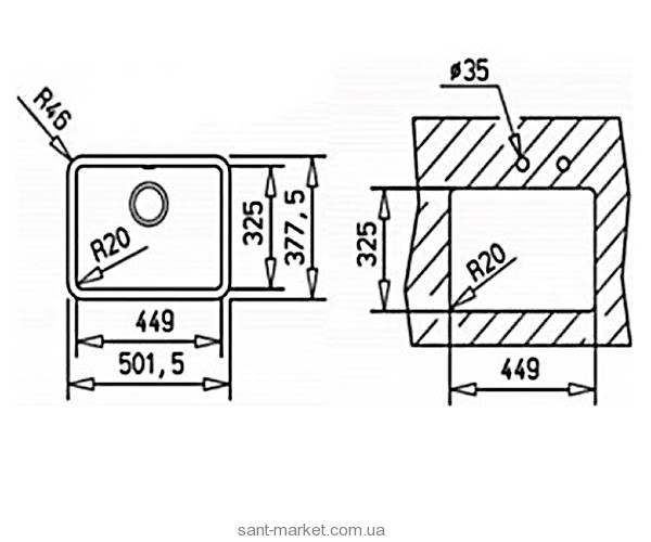 Мийка для кухні прямокутна TEKA Radea 450/325 TG під стільницю граніт топаз 88490
