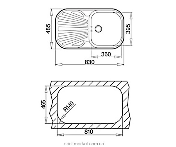 Прямокутна за формою, виготовлена з популярного сьогодні матеріалу – нержавіючої сталі,кухонна мийка легко монтується в стільницю кухонних меблів накладною врізкою. Розміри робочої поверхні 830 мм на 485 мм.