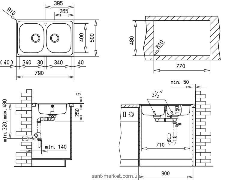 Мийка для кухні прямокутна Teka UNIVERSO 2B 79 2 чаші врізна нержавіюча сталь хром полірована 10120009