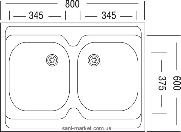 Мийка для кухні прямокутна Ukinox Standart 2 чаші накладна нержавіюча сталь хром STM 800 600 .20 GT 6C