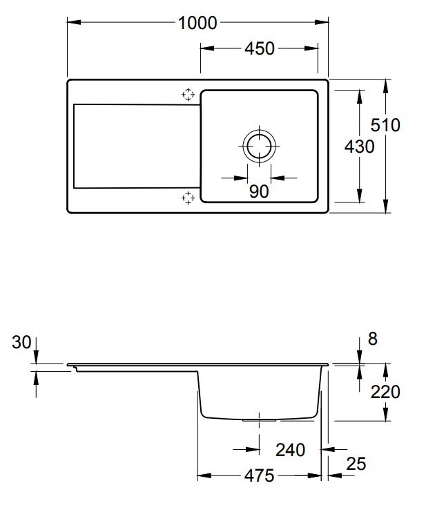 врізна в стільницю зверху, під стільницю