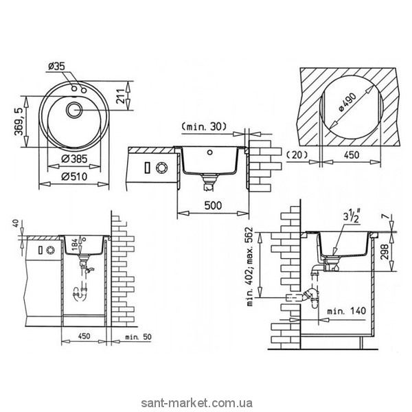 - Комплектація: мийка, 3½ вентиль-ексцентрик з переливом