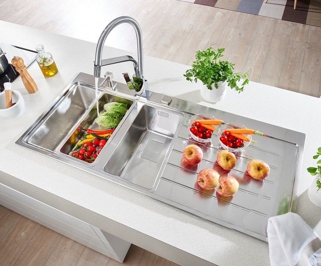 - Комплектація: мийка, вентиль 1 1/2 з клапаном-автоматом, коландер з нержавіючої сталі, бамбукова обробна дошка, диспенсер для мила