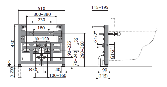 - Для підвісного біде з інтервалом кріплення 180 мм або 230 мм