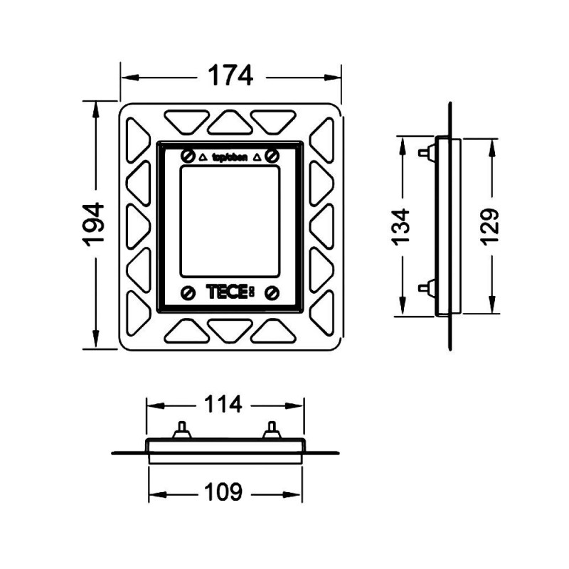 Монтажна рамка для установки скляних панелей для пісуара TECEloop Urinal на рівні стіни. Застосовується для монтажу скляних клавіш для пісуарів TECE серії Square, Loop, на одному рівні зі стіною. Необхідна для монтажу клавіш TECE серії Square, при цьому колір рамки не важливий, так як вона не видна під панеллю змиву.