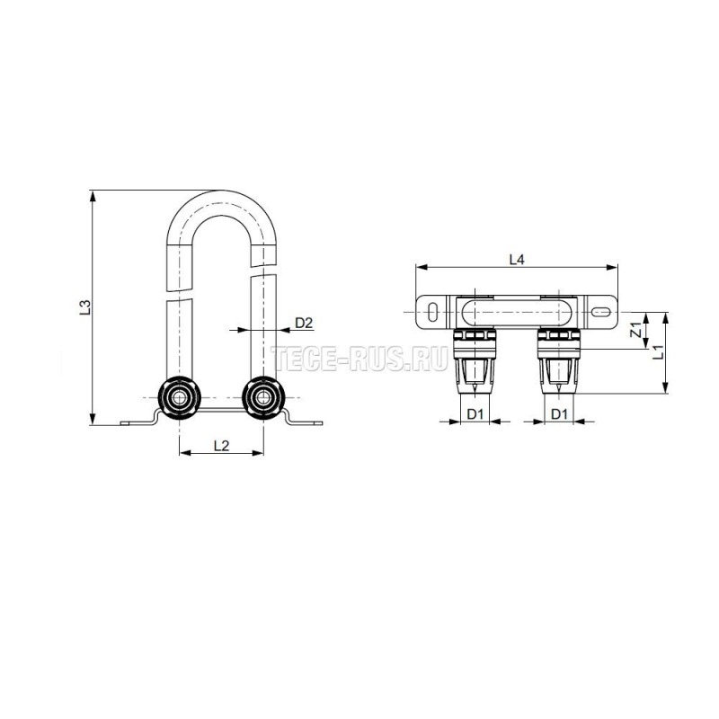 Монтажний блок для підключення радіатора підлоговий TECElogo встановлюється в трубопроводи із зшитого поліетилену і призначений для зручного та швидкого підключення опалювального приладу. У його комплектацію входить кронштейн для підлогового кріплення і U-подібна трубка з двома фітингами системи push-fit на кінцях. Трубка зроблена зі спеціальної високоякісної нікельованої латуні з відмінними технічними характеристиками, які передбачають можливість експлуатації в складних умовах. Фітинги використовуються для створення push-fit з'єднань.