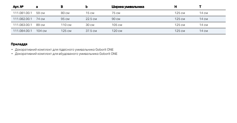 - Для умивальника Geberit ONE