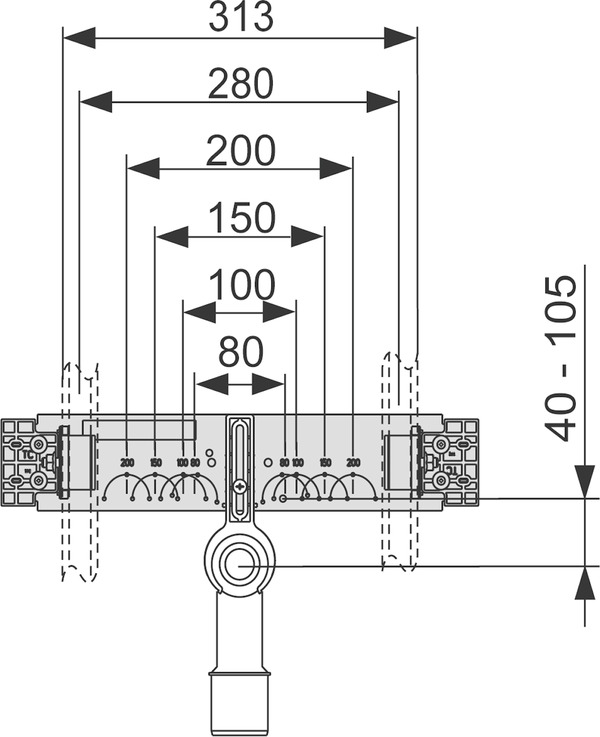 3) Два настановних елемента з різьбленням М10 і кріплення для раковини