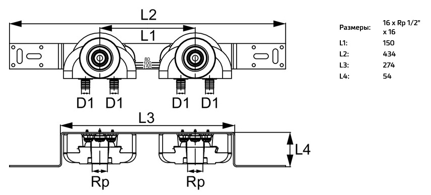 Монтажний вузол TECE TECEflex з кутовими трійниками з настінним кріпленням 153 мм 16xRp 1/2''x16 кремнієва бронза 720569