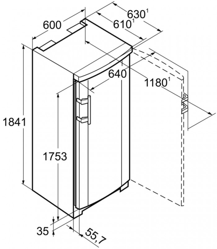 Зовнішні розміри (В / Ш / Г) 184,1 / 60,0 / 63,0 см