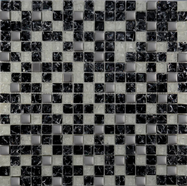 Мозаїка Grand Kerama мікс 30х30 см білий колотий / чорний колотий / платина 503