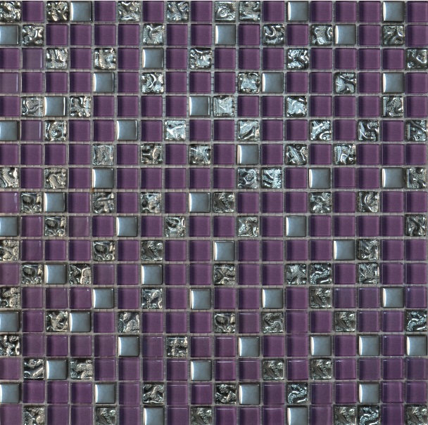 Мозаїка Grand Kerama мікс 30х30 см фіолетовий / платина рифлена / платина 914