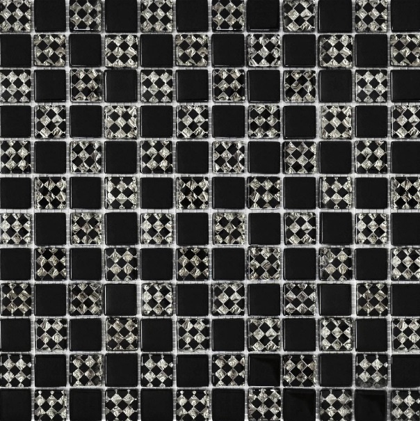 Мозаїка Grand Kerama шахматка 30х30 см чорний/ромб платина 805 052306