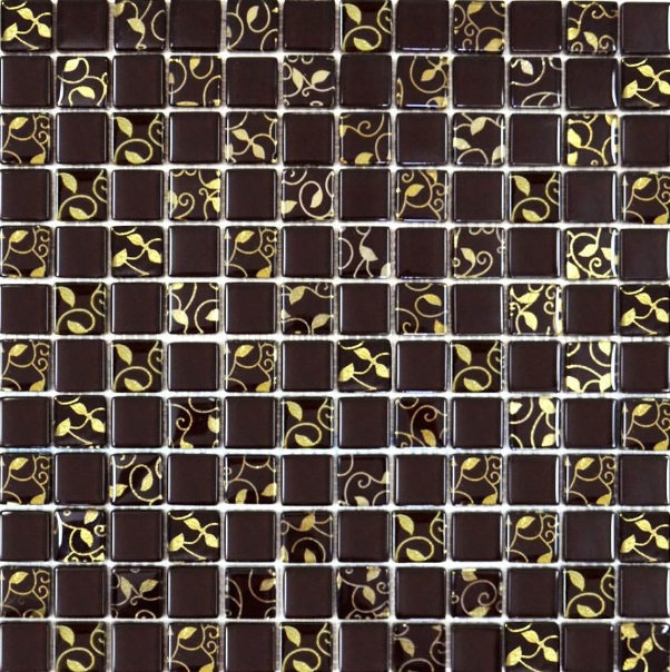 Мозаїка Grand Kerama шахматка 30х30 см шоколад/авиток золото 808 052310