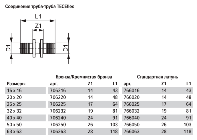 Муфта сполучна TECE TECEflex 25х25 мм бронза