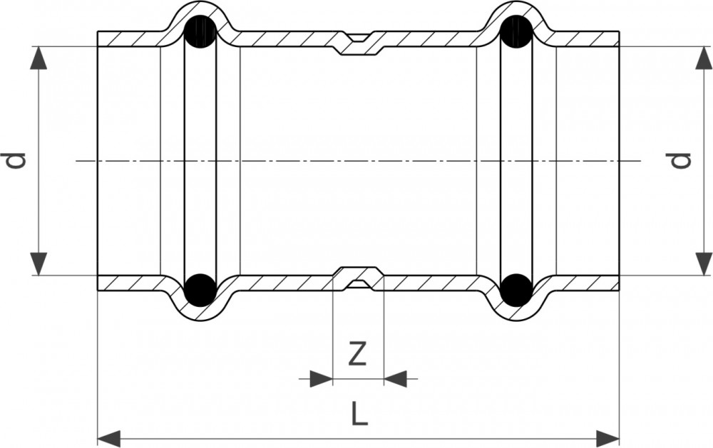 Прес-з'єднання мають кругової валик, в якому лежить ущільнювальний елемент. З'єднувач деформується вище і нижче по потоку від буортіка і з'єднується з трубою під час пресування. Цей ущільнювальний елемент не деформується при пресуванні.