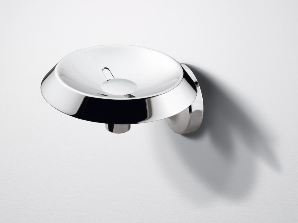 У дні тарілочки виконано таким чином отвори для відтоку зайвої води, мило завжди залишиться сухим і твердим. Матеріал основи - латунь, покриття хром. Мильниця E-PLUS придатна для експлуатації в екстремальних умовах, так як відрізняється монолітністю і міцністю конструкції. Вона швидше зігнеться, ніж зламається.
