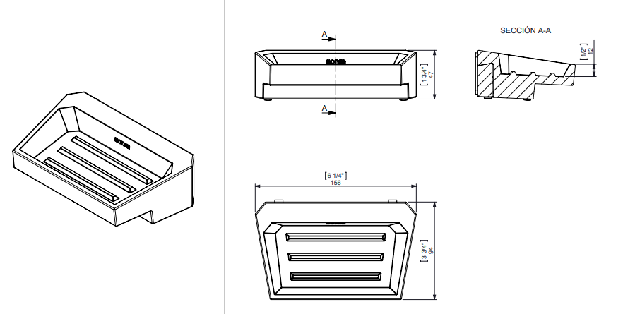 Проводиться мильниця з натурального каменю - матеріалу, який може служити протягом довгого часу, не втрачаючи своїх властивостей і привабливого зовнішнього вигляду.Мильниця має оригінальну трапецієподібну форму, що робить її функціональною і зручною в щоденному використанні. Вона не потребує додаткового монтажі, так як її можна просто розмістити на раковині або туалетному столику. Маючи невеликі розміри (156х47х94 мм), ця мильниця не займе багато вільного місця, але додасть ванній кімнаті особливого стилю і шику!