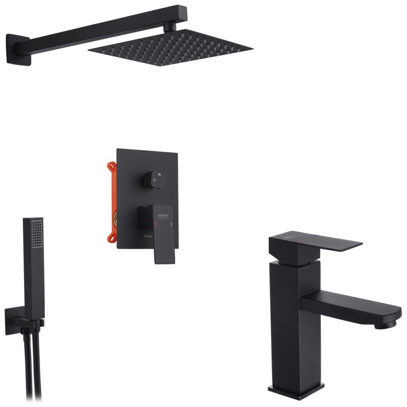 Набір 2 в 1 душова система Kroner Edelstahl Kubus-SCH082 + змішувач для раковини Edelstahl Kubus-SCH010 чорний CVS30181