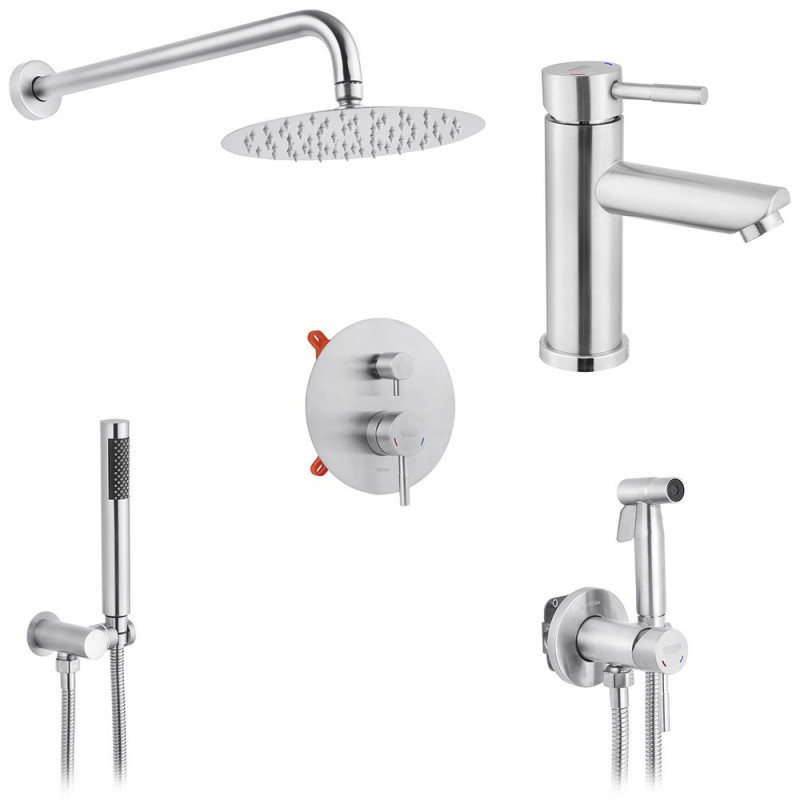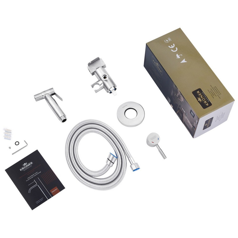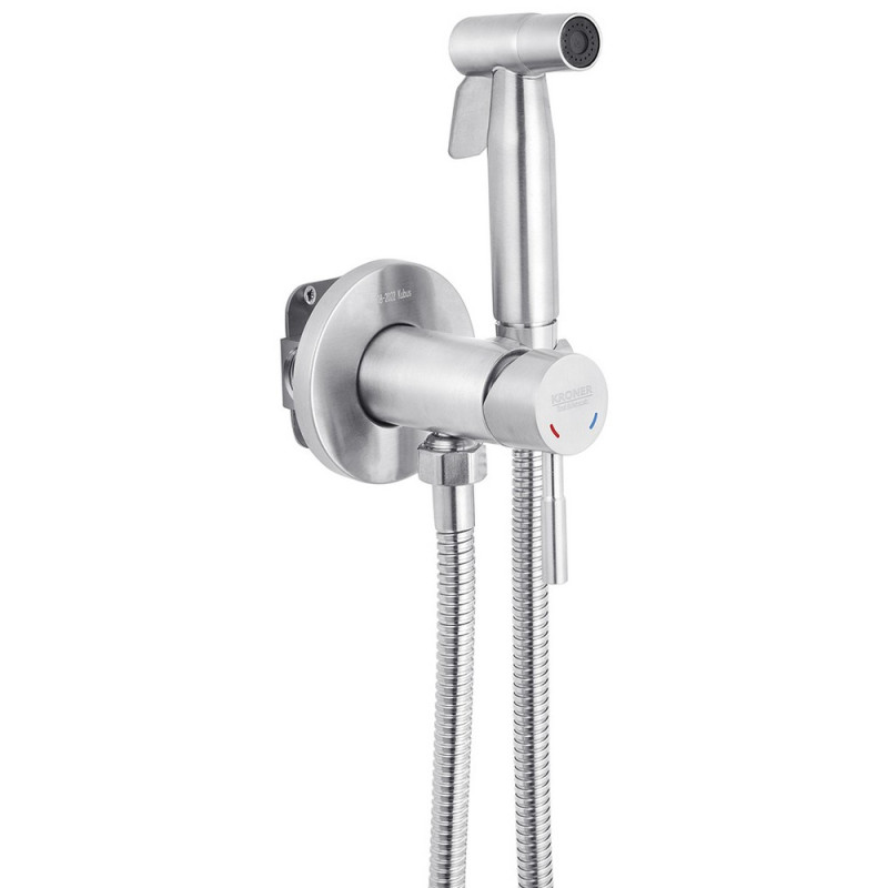Гігієнічний душ Kroner KRP Edelstahl Klassisch - ESG053 - відмінний варіант для реалізації функції біде навіть у невеликій ванній кімнаті. Корпус виготовлений з харчової нержавіючої сталі SUS 304, що забезпечує довговічність і безпеку експлуатації виробу. Змішувач оснащений керамічним картриджем діаметром 25 мм, який забезпечує плавне регулювання температури і тиску за допомогою важеля. У комплект входить ручна лійка з кнопкою, а також все необхідне для прихованого монтажу.