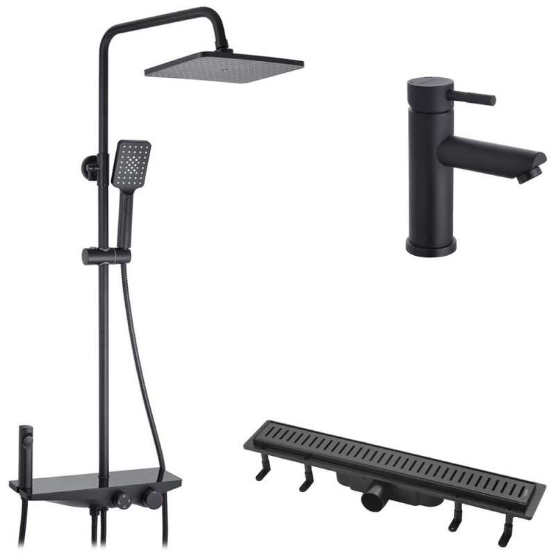 Набір 3 в 1 душова система Kroner Armada-SCH066 + змішувач Edelstahl Klassisch-SCH010 + трап Harz SCH60 чорний CVS30169
