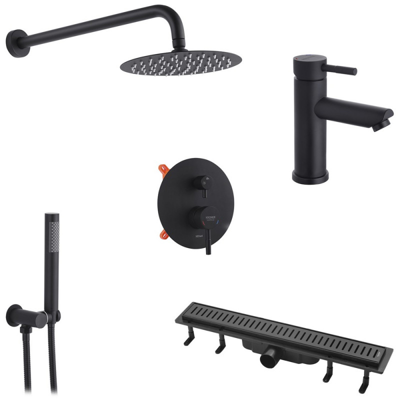Набір 3 в 1 душова система Kroner Edelstahl Klassisch-SCH082 + змішувач Edelstahl Klassisch-SCH010 + трап Harz SCH60 чорний CVS30168