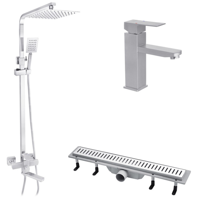 Набір душова система 3 в 1 Kroner Edelstahl Kubus-ESG063 + змішувач Edelstahl Kubus-ESG010 + злив Harz S60 нікель