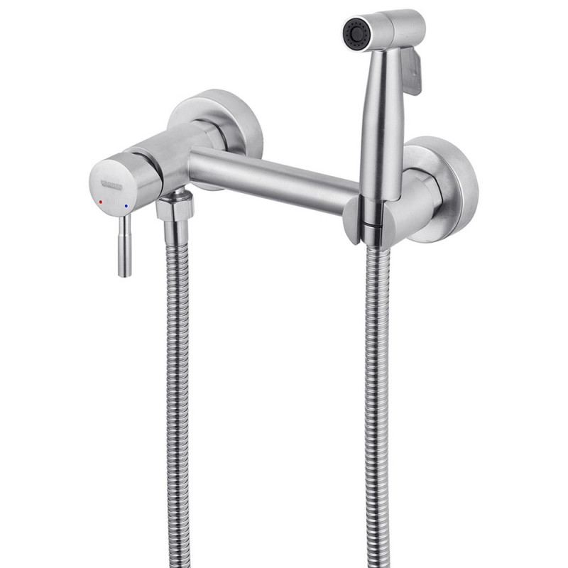 Гігієнічний душ Kroner KRP Edelstahl Klassisch - ESG052 - відмінний варіант для реалізації функції біде навіть у невеликій ванній кімнаті. Корпус виготовлений з харчової нержавіючої сталі SUS 304, що забезпечує довговічність і безпеку експлуатації виробу. Змішувач оснащений керамічним картриджем діаметром 25 мм, який забезпечує плавне регулювання температури і тиску за допомогою важеля. У комплект входить ручна лійка з кнопкою, а також все необхідне для настінного кріплення.
