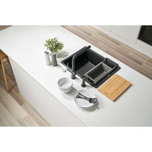 All-In – це аксесуари, які революціонізують вашу мийну зону та покращать щоденне приготування, приготування їжі та прибирання. Завдяки універсальній та інноваційній системі ваша мийка перетвориться на надзвичайно комфортне робоче місце, але стане стильним елементом на вашій кухні. All-In був розроблений, щоб заощадити вашечас та простір! Тепер ви можете мати все в одному місці завжди під рукою.