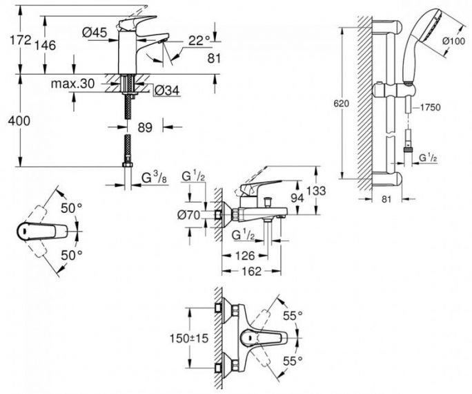 - Дивитися інші: Комплекти змішувачів для ванної кімнати Grohe