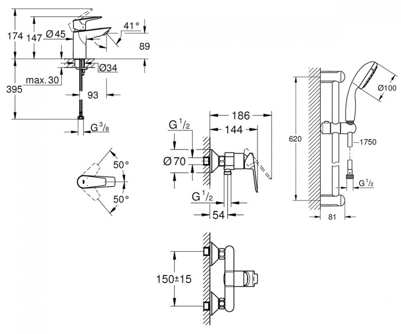 - Дивитися інші: Комплекти змішувач для ванної з душовим гарнітуром Grohe