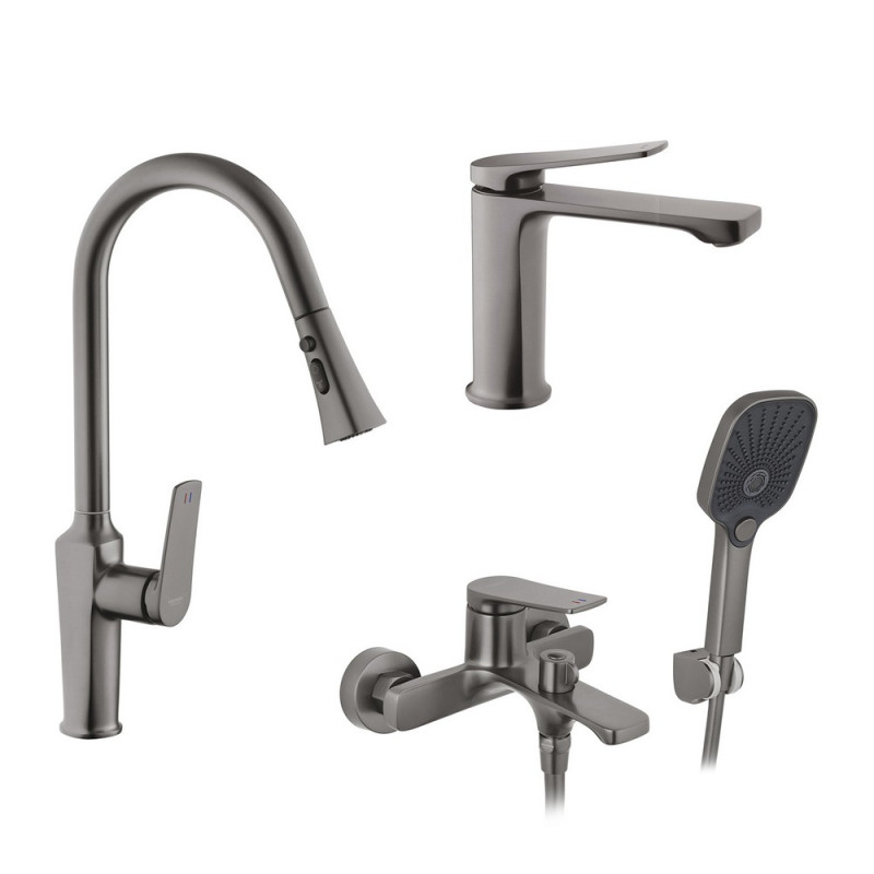 Набір змішувачів для ванної Kroner Makon-GRP060 + змішувач Makon-GRP030-T + змішувач Makon-GRP010 графіт CVS30154