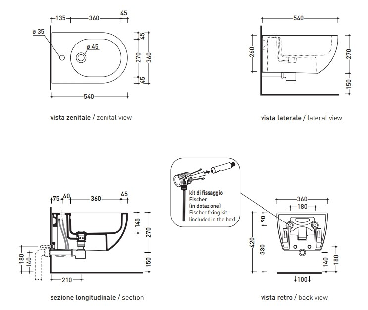 Набір 4 в 1: підвісне біде з кріпленнями + система інсталяції з звукоізоляційним комплектом AP218 + 111.520.00.1 + 111.815.00.1 + 156.050.00.1