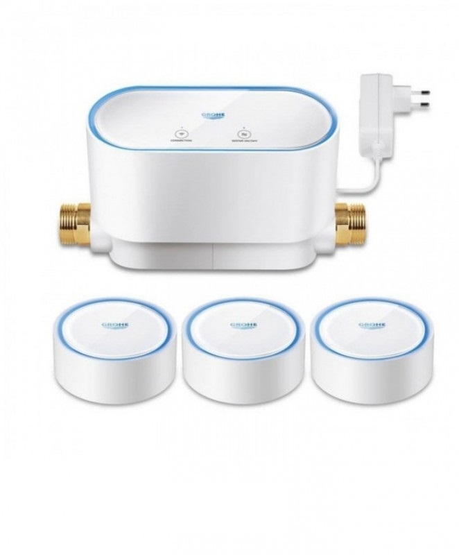 Grohe SenseGuard – це справжній сторож вашого будинку. Цей багатофункціональний пристрій захищає від затоплення та контролює мікроклімат приміщення. Воно безпомилково виявляє навіть витоку води, контролює витрату води, тиск і температуру. SenseGuard необхідно встановити на магістральний водогін. У разі поломки труби система AquaBlock виявляє проблему і миттєво відключає подачу води. Система передає всі дані на смартфон через програму Grohe ONDUS для iOS та Android.