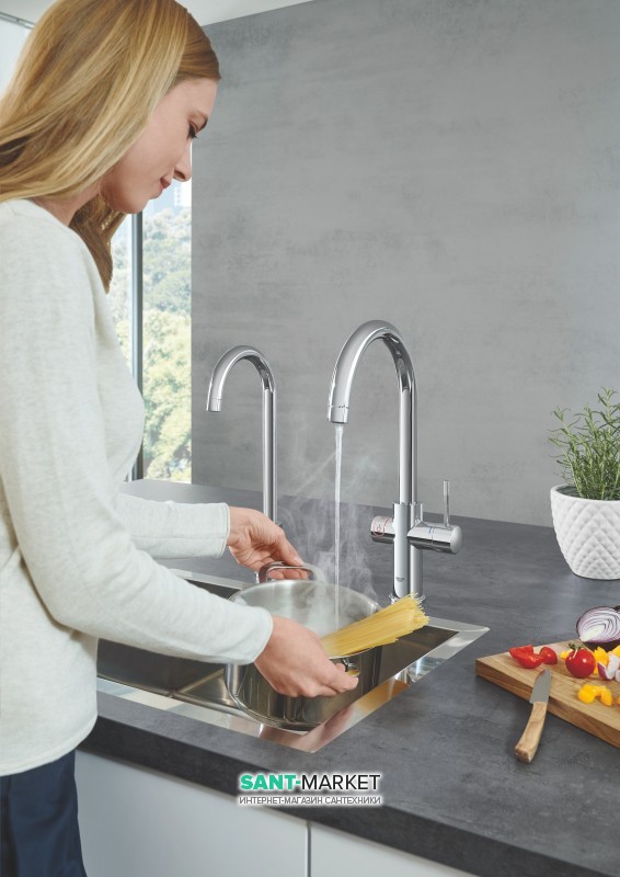 Поспішайте купити Набір змішувач для кухні Grohe Red Duo з водонагрівачем (L-size в комплекті) хром 30079001 за акційною ціною.