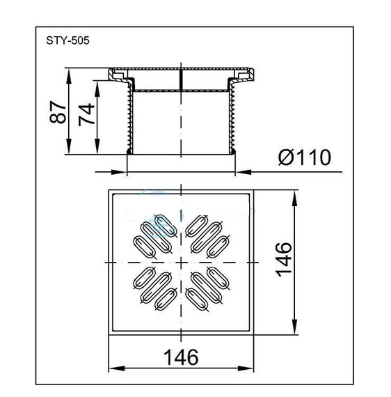 Надставка для зливного трапу Styron з решіткою Flower 146х146 мм нержавіюча сталь STY-505-FLOWER
