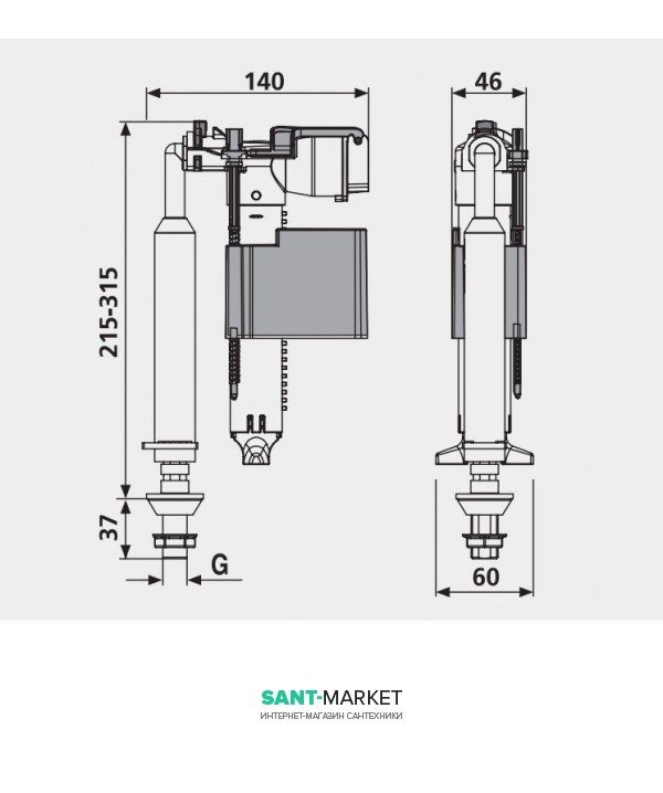 Невеликий і компактний за формою, висока пропускна спроможність – 3,6 л/хв при тиску води 0,5 бар, що швидко закривається, дуже низький рівень шуму, арматура класу I, легке складання та обслуговування завдяки застосуванню простих фіксаторів та штекерних роз'ємів, витрата води при змиванні налаштовується за бажанням за рахунок регульованого поплавця, з телескопічною (розсувною) трубою, універсальна, підходить для настінних змивних бачків із пластику та кераміки з підведенням води внизу, із пластмасовим штуцером. Упаковка: У поліетиленових пакетах