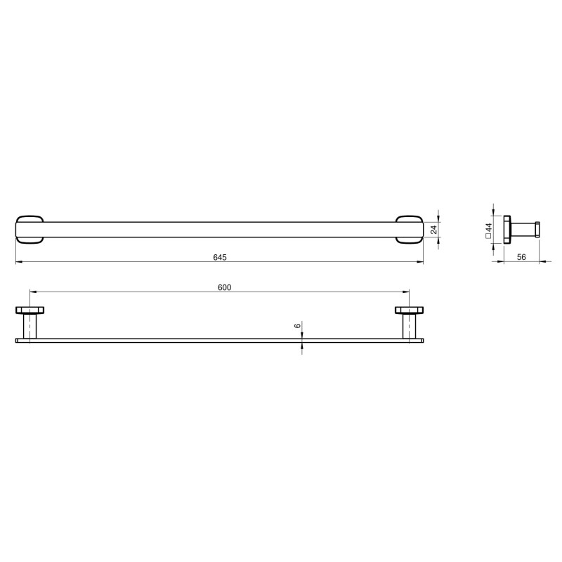 Одинарний, настінний полотенцедержатель 15-88-342 серії Teo розміром 64.5 x 4.4 см виготовлений з покриттям блискучого кольору.