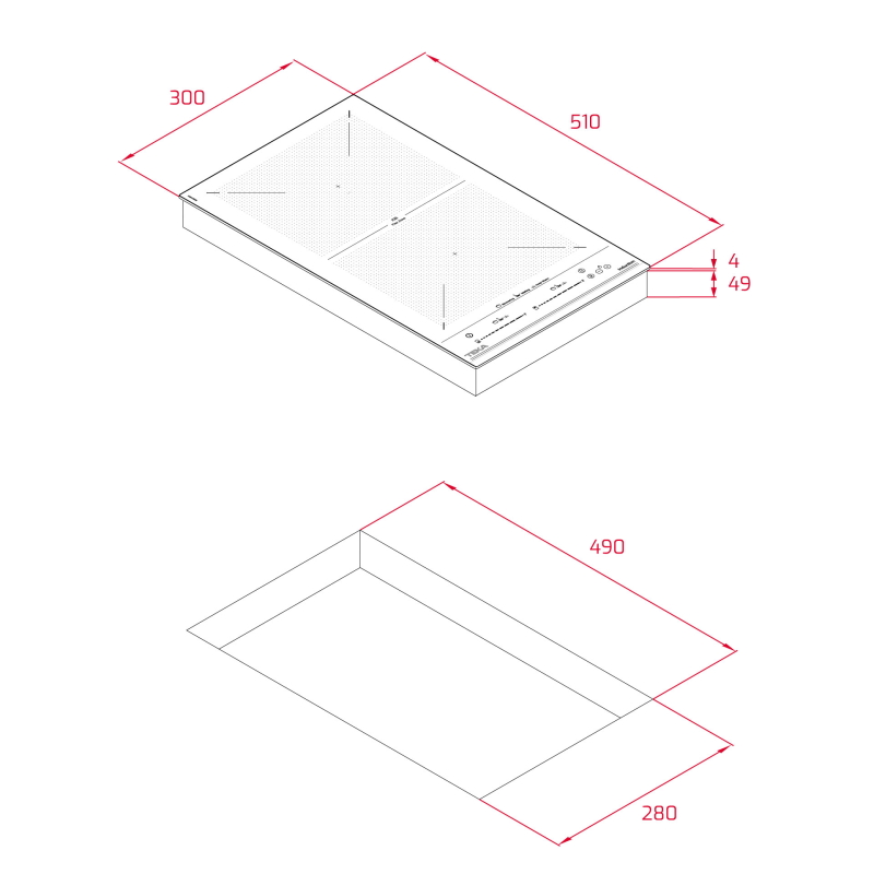 - 1 індукційна зона 235 X 188.5 мм (1,75/2,2 кВт)