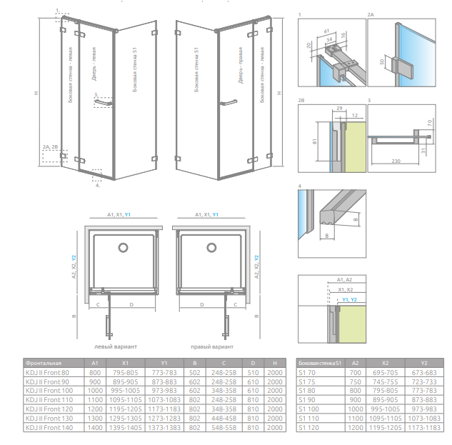 У замовленні потрібно вказати 3 номери артикулів: фронтальної частини кабіни (два номери: стулка дверей та непідводний елемент) та бічної стінки S1.