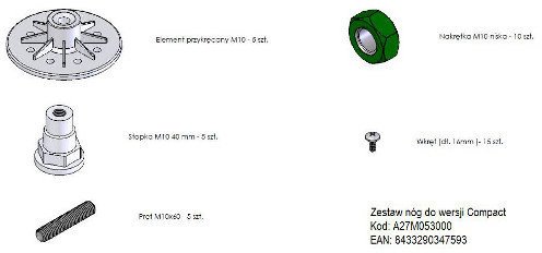 Набір включає в себе: гвинт (6 шт.), Шуруп (15 шт.), Лапка (15 шт.), Низька гайка (10 шт.), Стрижень (5 шт.)