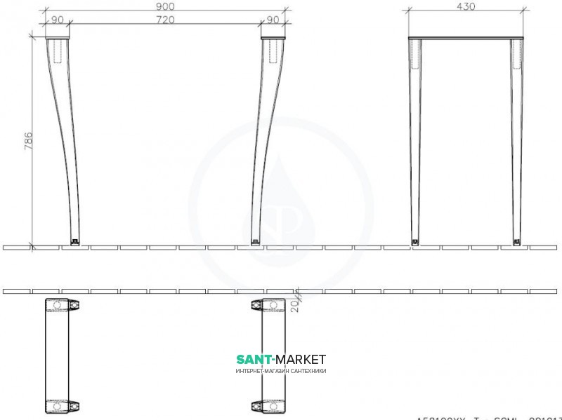 Ніжки для раковин Villeroy & Boch LA BELLE 90х43х78.6 612411 / А1 / 13 A58110DJ