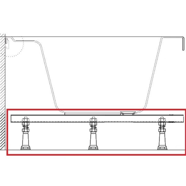 Універсальна опорна конструкція призначена для акрилових ванн і служить для простого вирівнювання площини ванни. Встановлену таким способом ванну можна обкласти цеглою і облицювати кахлем. Універсальна опорна конструкція складається з двох металевих балок і чотирьох регульованих ніжок.