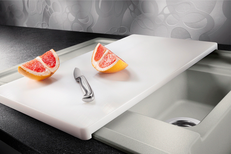 Обробна дошка Blanco (217611) ідеально підходить для функціонального і дизайнерського доповнення кухонного простору. Зручні розміри і форма для комфортної роботи на кухні. Профілі обробної дошки дозволяють встановлювати її безпосередньо в мийку або на крило - для отримання додаткової робочої поверхні. Обробна дошка виконується спеціальним жолобком під стік рідини.