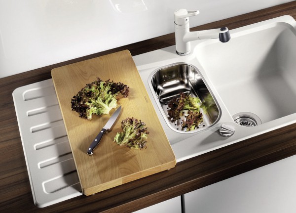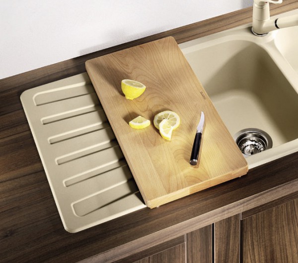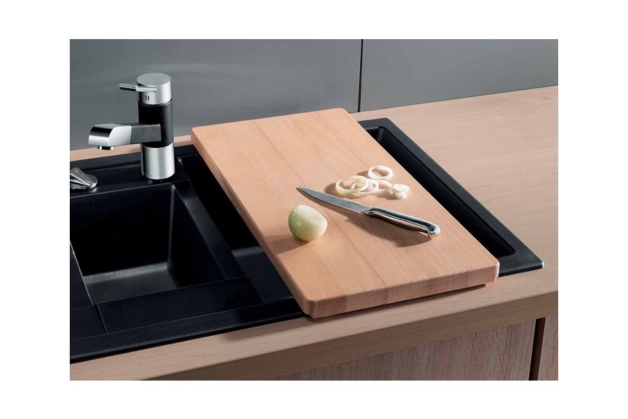 Обробна дошка Blanco (218313) ідеально підходить для функціонального і дизайнерського доповнення кухонного простору. Зручні розміри і форма для комфортної роботи на кухні. Профілі обробної дошки дозволяють встановлювати її безпосередньо в мийку або на крило - для отримання додаткової робочої поверхні. Обробна дошка виконується спеціальним жолобком під стік рідини. Фіксується за краю мийки шириною 500 мм спеціальними ніжками-фіксаторами.