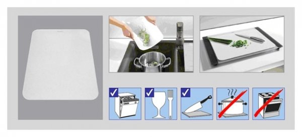 Обробна дошка Blanco - ідеальне доповнення до мийки. Виготовлена з екологічно чистого пластику, а також стильна, якісна, зручна у використанні.