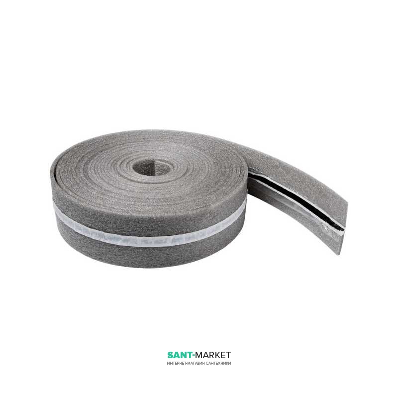 Демпферная стрічка з спіненого поліетилену, самоклеюча, для звукоізоляції та компенсації теплового розширення стяжки відповідно до DIN 18560. Підходить для цементної іплаваючою стяжок.